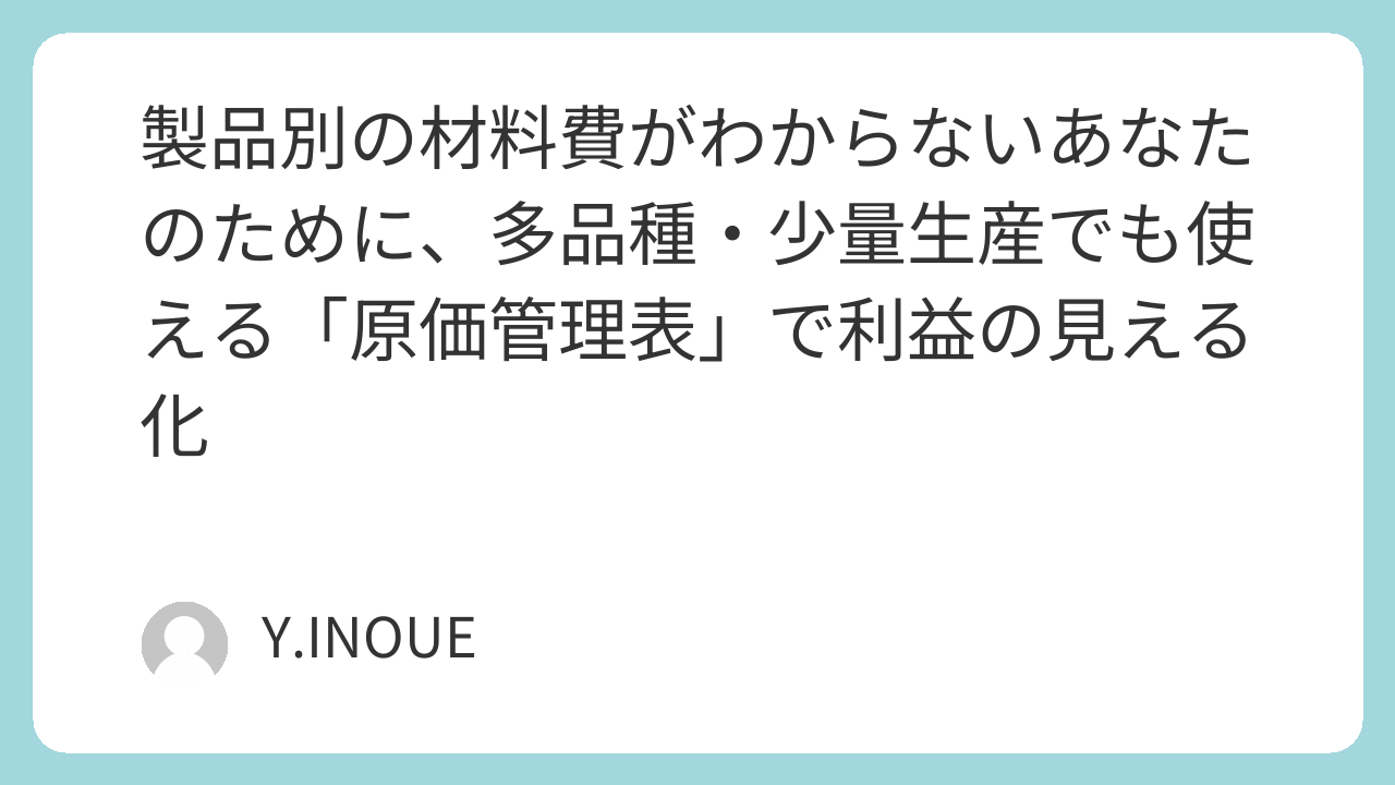 スプレッドシートと売上と材料費だけを使った簡単な利益管理の動画をアップしたのですが、「そもそも製品ごとの材料費がよくわからない…」という声がありました。