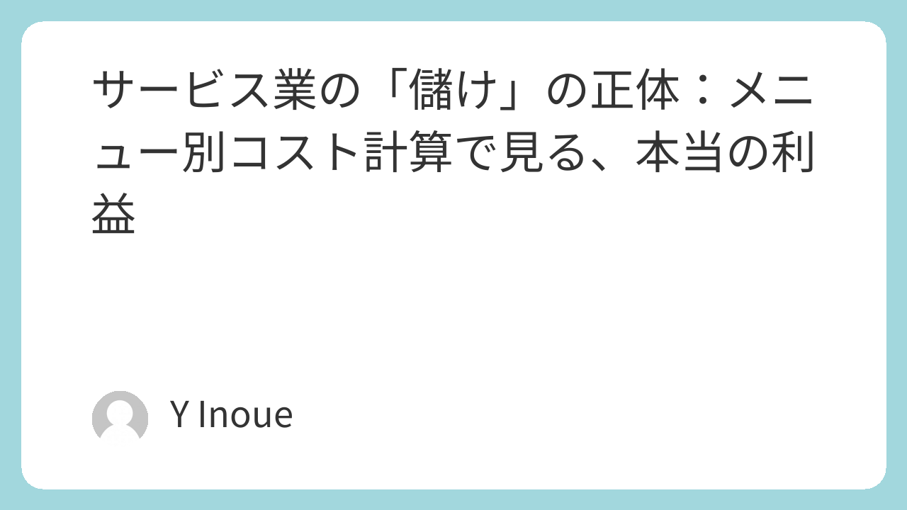 - コスト配賦の重要性 手間(人件費)や資源(消耗品など)のかかり具合に応じてコストを正しく配賦することで初めて、メニューごとの真の収益性が見えてきます。この一手間が、ビジネスの運命を分けるのです。